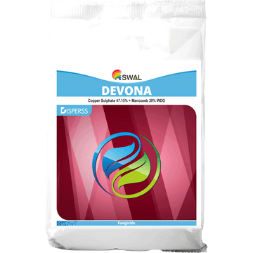 Protect your investment with SWAL Devona, a high-performance broad-spectrum fungicide and bactericide. Engineered with a potent blend of Copper Sulphate (47.15%) and Mancozeb (30%), Devona utilizes an advanced WDG (Wettable Granule) technology for superior coverage and ease of use.